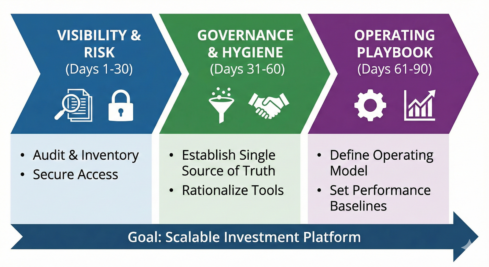 The first 90 days are about reducing this uncertainty. The objective is to make the marketing engine understandable, governable, and reliable.